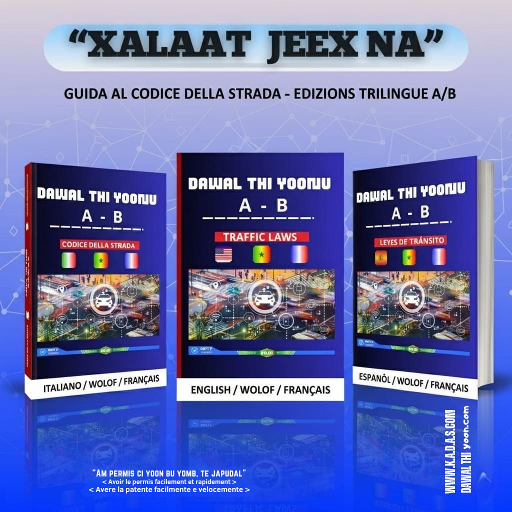 Discover the Dawal Thi Yoon international collection, available on The Great British Book Shop and worldwide.This trilingual educational project promotes road safety, civic education, and linguistic inclusion between Africa and Europe.Explore the Multilingual Highway Code Series in various editions — (Italian–Wolof–French), (English–Wolof–French), and (Spanish–Wolof–French) — with global distribution across 🇺🇸 the USA, 🇨🇦 Canada, 🇬🇧 the United Kingdom, 🇬🇲 Gambia, and 🇦🇺 Australia. 🇮🇹 Italiano. 🇪🇸 España. 🇸🇳 Senegal. 🇫🇷 France. 🌍🗺️🌐📦💫